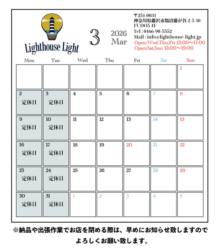 神奈川県は湘南・藤沢を拠点としているアンティークショップ/ヴィンテージショップ/照明専門店